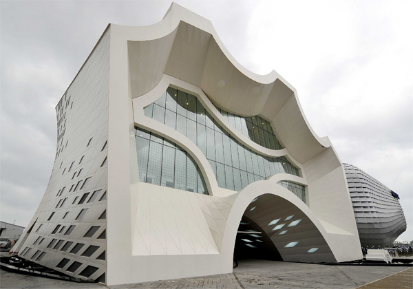 Ispirata al concept design “Vision Gate”, la facciata frontale del padiglione rappresenta architettonicamente il sistema di riciclo a circuito chiuso adottato da Hyundai Motor Group e connette le cinque aree core business dell’azienda: acciaio, automotive, ingegneria e costruzioni, logistica e componenti. La facciata posteriore richiama, invece, una lettera “H” stilizzata, simbolo di Hyundai Motor Group.