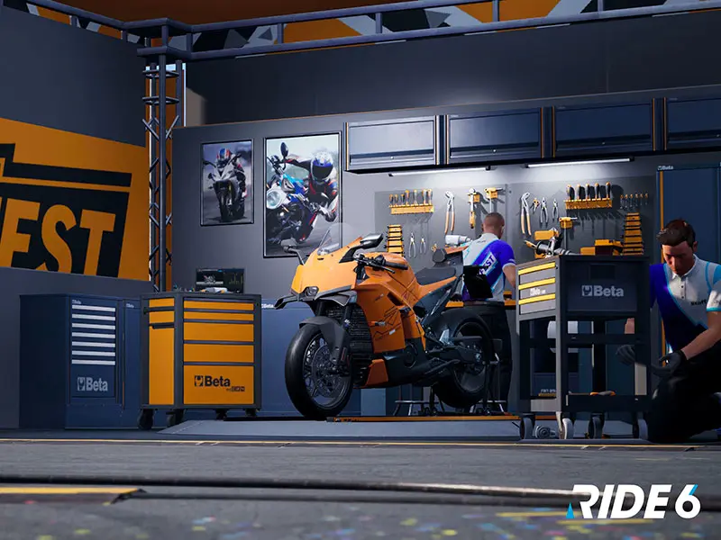In RIDE 6, disponibile da oggi per PlayStation 5, Xbox Series X/S e PC tramite Steam ed Epic Game Store, è stato realizzato uno spazio completamente personalizzato che riproduce una vera officina. Il Beta Garage include arredo modulare, cassettiere mobili, utensili e attrezzature dedicate al mondo delle due ruote, con l’obiettivo di simulare l’esperienza dei box dei campionati mondiali di motociclismo.