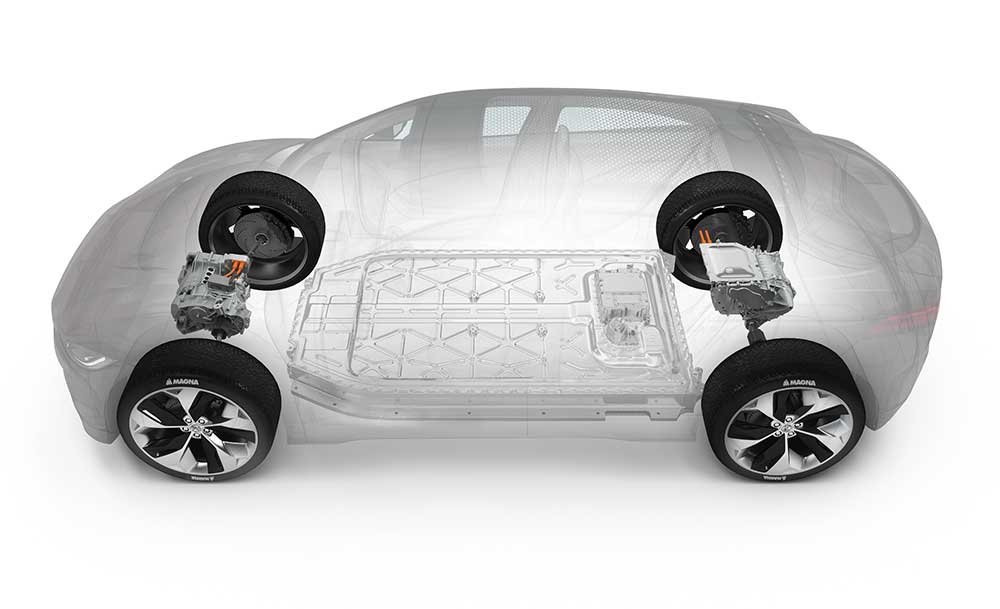 L’elettrificazione offre nuove opportunità ai fornitori, che stanno proponendo con una certa frequenza powertrain più o meno completi. In effetti la relativa semplicità dei motori elettrici e dell’elettronica di controllo permette anche ai supplier di offrire motori e trasmissioni integrati. Questa tendenza si è esplicitata, per esempio con il powertrain Bosch CVT4EV o con la versatile ZF PowerLine, una trasmissione automatica per veicoli commerciali che può gestire motori termici, ibridi o elettrici. Ora vediamo come Magna International propone powertrain elettrici e ibridi, soluzioni evolute consentito dalla grande esperienza di questo fornitore particolare. Magna International per conto degli OEM può infatti creare un concept, ingegnerizzare un intero veicolo e addirittura produrlo.