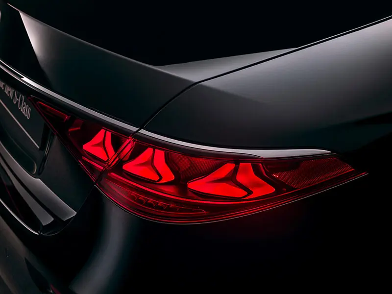 Dal punto di vista estetico, la berlina guadagna una presenza ancora più scenografica. La griglia frontale cresce nelle dimensioni, mentre la firma luminosa si arricchisce con fari Digital Light di nuova generazione e una stella Mercedes illuminabile sul cofano. Anche il posteriore viene rivisto, con gruppi ottici ridisegnati e dettagli cromati che rafforzano l’immagine di status.