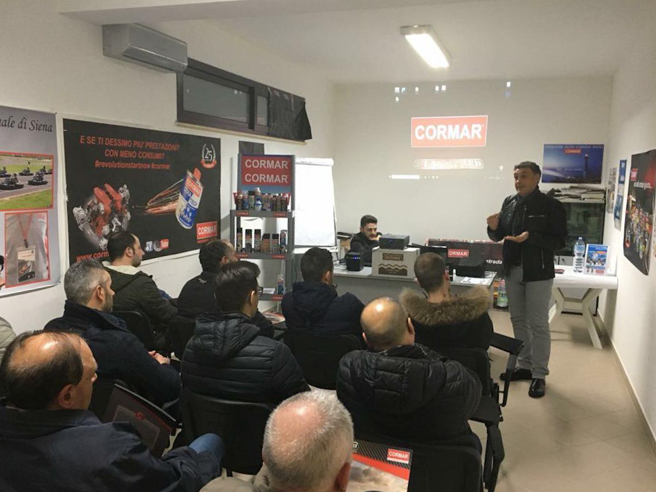 Cormar, negozio di ricambiIl trattamento di pulizia deterge a fondo e riesce persino a compensare (sono state fatte misure) differenze nella compressione dei cilindri perché pulisce e scolla le fasce elastiche. Così il motore funziona meglio, consuma di meno e riduce anche le emissioni allo scarico. Cordiano stima che le auto trattate siano ormai decine di migliaia dato che i riparatori-clienti sono circa 500. Ormai il core business è quello dei prodotti chimici CORMAR, compresi gli olii e i pulitori, con gli altri ad essere un completamento dell’assortimento. Il fatturato viene per il 75% dai professionisti ma i privati stanno crescendo: essi si documentano sempre più, acquistano direttamente e si prevede arriveranno rapidamente al 50%. La formazione interessa anche i ricambisti, presso i quali si organizzano corsi per i loro clienti-riparatori. Si è visto che i riparatori vedono un prodotto ma non sanno a cosa serva e quindi è meglio spiegarglielo in maniera attiva. CORMAR ha preparato anche un ‘libretto’ dei tagliandi per l’utilizzo corretto dei prodotti: Ceratec, ad esempio, va usato ogni 40.000 km. Occorre comunque essere sempre professionali, sia dietro una scrivania o un banco vendita: una persona preparata dà più fiducia.